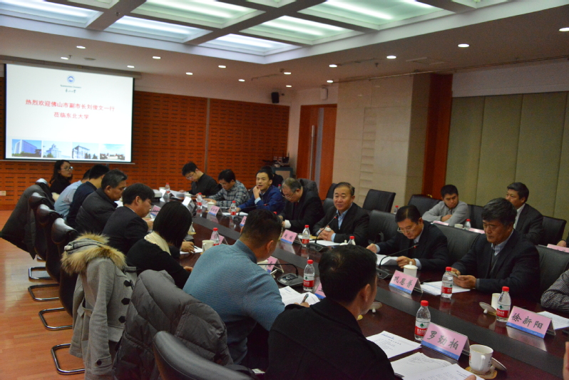 2019年1月21日,佛山市委常委、副市长刘俊文一行访问东北大学,佛山市教育局局长商学兵、佛山市顺德区区委常委唐磊晶、佛山市教育局副局长徐旭雁、佛山市顺德区人民政府办公室副主任王德华等同行,一行人员考察了东北大学校史馆、浑南校区图书馆、浑南校区风雨操场、东软集团、轧制技术及连轧自动化国家重点实验室、流程工业综合自动化国家重点实验室、创新创业学院。赵继校长、徐峰副校长和学校相关部门负责人与来访人员在汉卿会堂308室举行座谈,双方就加强协同创新和产学研合作、加强人才交流和引进合作、加强高等教育和人才队伍建设合作、共建高水平科技创新和成果转化载体、共建研究生院等事宜进行了深入交流和探讨。