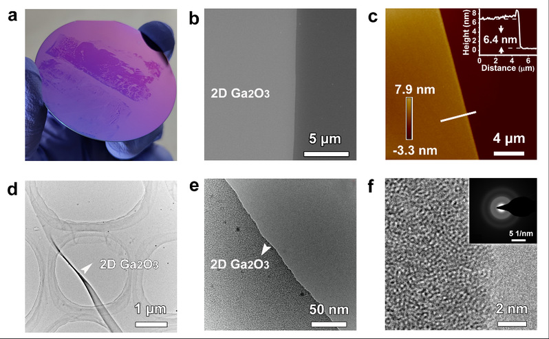 图2 大尺寸二维氧化镓非晶的表面形貌、厚度和晶体结构
