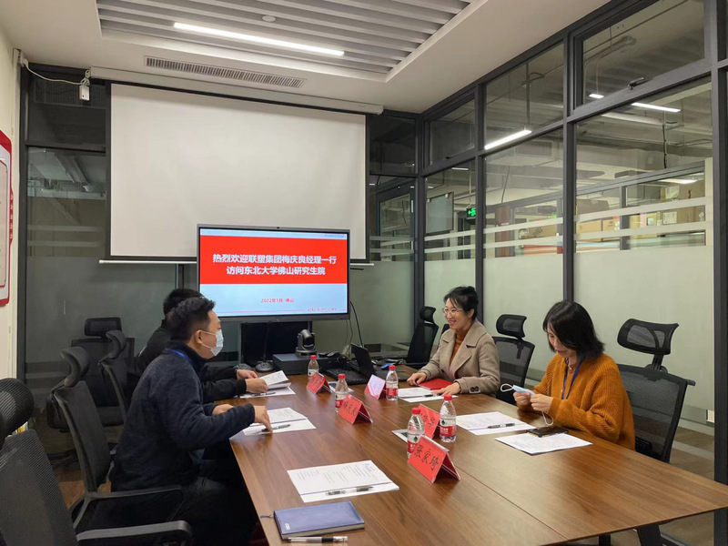 2022年1月20日,联塑集团人力资源中心经理梅庆良、联塑集团博士后工作站主管何楚华等一行来访东北大学佛山研究生院,学生工作部部长王瑞平与来访人员进行了座谈交流。