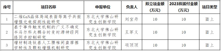 近日,广东省基础与应用基础研究基金委员会正式发布《广东省基础与应用基础研究基金委员会关于2022年度省基础与应用基础研究基金省市联合基金(粤穗、粤深、粤佛、粤莞、粤惠)拟立项项目的公示》《广东省基础与应用基础研究基金委员会关于2023年度广东省基础与应用基础研究基金自然科学基金拟立项项目的公示》,东北大学佛山研究生创新学院共获批项目8项,获批经费共计160万元。