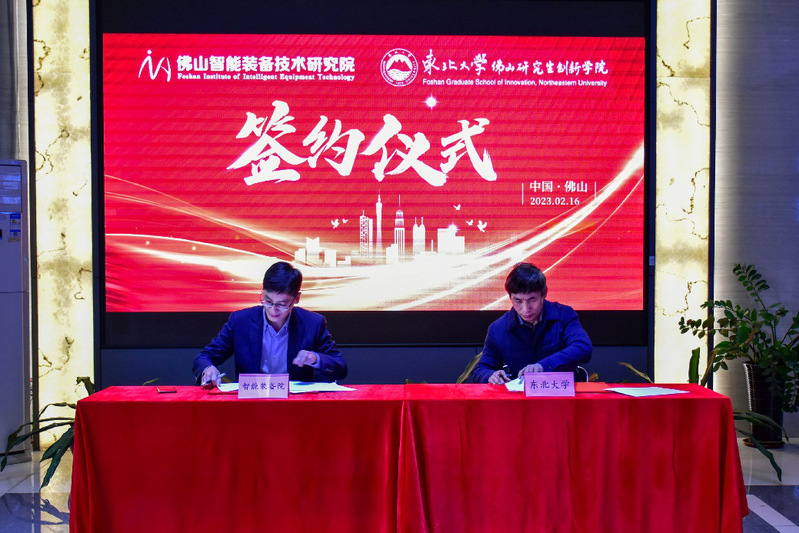2023年2月16日下午,《东北大学佛山研究生创新学院 佛山智能装备技术研究院研究生联合培养基地合作协议》签署仪式在佛山智能装备技术研究院行政大楼举行,佛山研究生创新学院院长徐新阳、学生工作部部长王瑞平、科研工作部负责人杨丽蓉,智能装备院常务副院长周星、院长助理兼产业化中心主任周伟娜、人力资源主管曹芳芳等出席签约仪式。