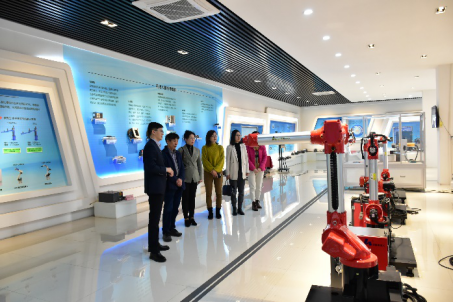 周星院长一行陪同参观了机器人成果展厅、数字化智能制造车间、实验室、实训中心、研发中心等,详细讲解了智能装备研究院的发展历程和成果,育人模式及校企合作创新成果。