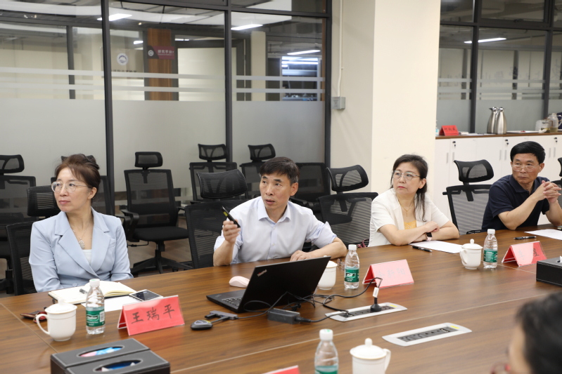 徐新阳院长对徐峰副校长一行的到来表示热烈欢迎。座谈会上,徐新阳回顾了佛山研究生创新学院的发展历程,并详细汇报了学院自2019年7月启动建设以来的工作进展情况。徐新阳介绍了学院在师资队伍建设、人才培养、科学研究和成果转化等方面取得的一系列成效,提出了现阶段存在的问题和需要学校支持的事项。