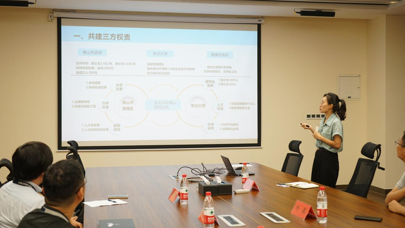 继2024年“创业顺德”系列活动之东北大学科技成果对接活动在东北大学佛山研究生创新学院顺利举行后,我院与相关企业进一步进行了沟通和交流,于2024年7月2日举办了东北大学佛山研究生创新学院-深圳汉莎技术有限公司专场对接活动。顺德区科学技术局科技创新股股长苏莉敏、顺德区院士创新中心代表,深圳汉莎技术有限公司ACS生产中心方泽宏经理、数字化中心赵朋经理、ACS设备中心苏凤军经理、成本采购中心赫天瑜经理,东北大学佛山研究生创新学院刘宝丹教授、杨淼副教授、科研工作部负责人杨丽蓉参加了对接活动。