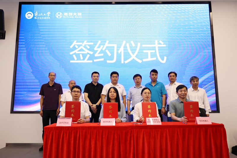 随后,东北大学佛山研究生创新学院与隆深机器人、饪芯机器人、朗宇芯科技签署了合作协议。政校企三方代表共同见证这一重要时刻,标志着多维度合作正式启动。