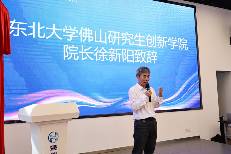 东北大学佛山研究生创新学院徐新阳院长系统介绍了学院的发展历程、专业设置、培养规模及办学成效。他指出,学院充分发挥东北大学学科优势,紧密结合佛山产业发展需求,重点在人工智能与互联网、先进制造与机器人、新材料与新能源、生物医学与生命健康前沿领域开展科研攻关,目前已取得多项具备产业化潜力的科研成果。徐院长表示,期待学院的入驻能够为园区注入创新活力,为区域企业提供更强劲的智力支持。