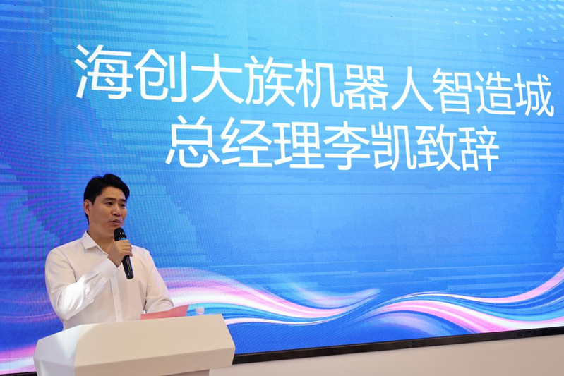 海创大族机器人智造城总经理李凯在致辞中首先对莅临现场的领导和嘉宾表示衷心感谢。他强调,园区始终秉持"服务企业、共创共赢"的初心,通过切实有效的举措助力入园企业发展,实现企业兴则园区荣的良性循环,未来将持续推进企业赋能活动的常态化开展。