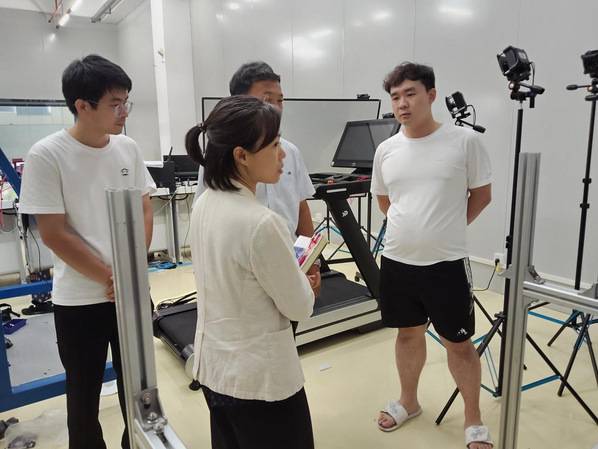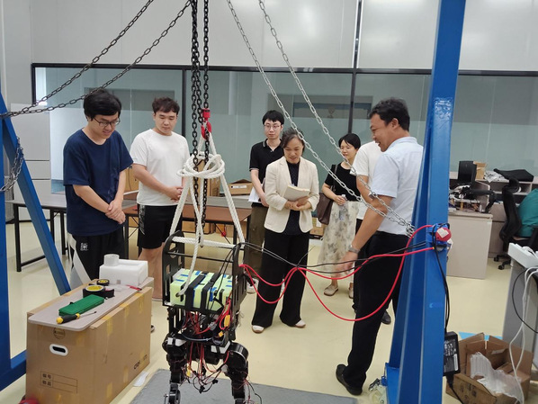 随后,调研组来到医疗服务机器人实验室,深入了解外骨骼机器人、四轮足机器人和人形机器人等前沿技术的研发进展。甘智敏副局长就核心技术攻关、应用场景拓展及成果转化路径等关键问题与科研人员进行了深入交流。