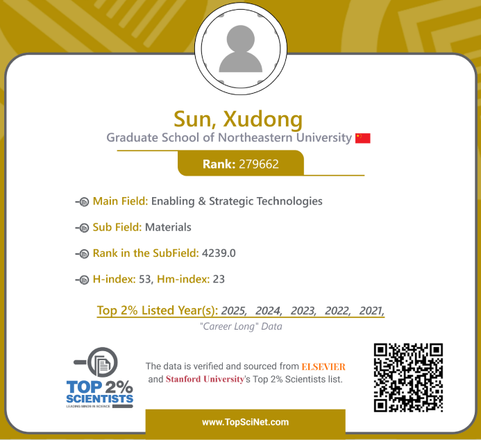 2025年9月20日,美国斯坦福大学和爱思唯尔数据库(Elsevier Data Repository)发布第八版《年度全球前2%顶尖科学家榜单》(World’s Top 2% Scientists),根据其“终身影响力”和“年度影响力”遴选出世界排名前2% 的科学家。东北大学佛山研究生创新学院孙旭东与张孝顺两位教师荣登榜单,均入选“终身科学影响力排行榜”(Career-long impact)和“2025年度科学影响力排行榜”。两位老师均连续5年入选该榜单,张孝顺副教授首次入选“终身科学影响力排行榜”。其中,孙旭东教授在材料细分领域2025年度全球排名是4185名,张孝顺副教授在能源细分领域2025年度全球排名是2185名。