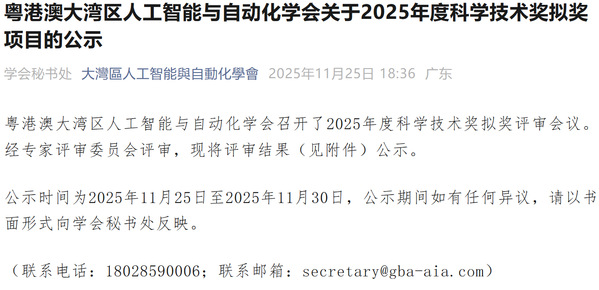 2025年11月25日,粤港澳大湾区人工智能与自动化学会公示了2025年度科学技术奖拟奖项目、2025年优秀论文评选结果。其中,我院以第一完成单位牵头的项目《数据与机理联合驱动的高比例新能源电力系统优化决策与协同控制理论方法》,荣获“粤港澳大湾区人工智能与自动化学会2025年度自然科学奖一等奖”,人工智能与智能电网实验室团队参与人员包括:张孝顺副教授(第一完成人)、郭正勋(博士研究生)、李锦诚(博士研究生)、张锟(硕士研究生)、陈义军(博士研究生)。